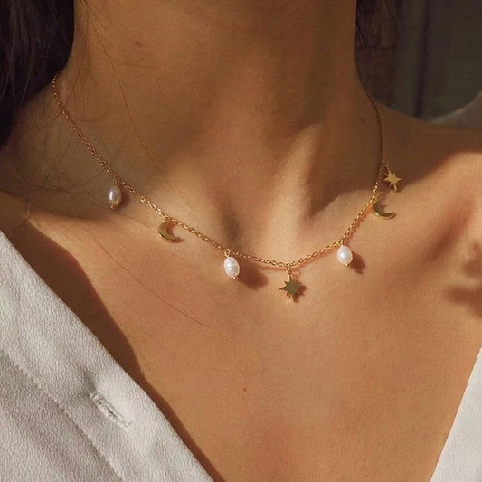Moon, Star & Pearl Necklace